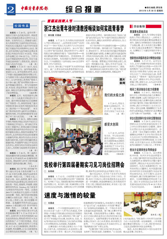 本报讯 5月18日,我校举办全国大学生工程训练综合能力竞赛浙江参赛队观摩赛。从浙江省首届大学生工程训练综合能力竞赛中选拔出来的来自中国计量学院、中国计量学院现代科技学院、浙江大学和浙江工业大学之江学院4支队伍参赛。观摩赛吸引了众多的学生前来观战,热情地为行走在赛道上的“无碳小车”加油喝彩。(詹 雯)