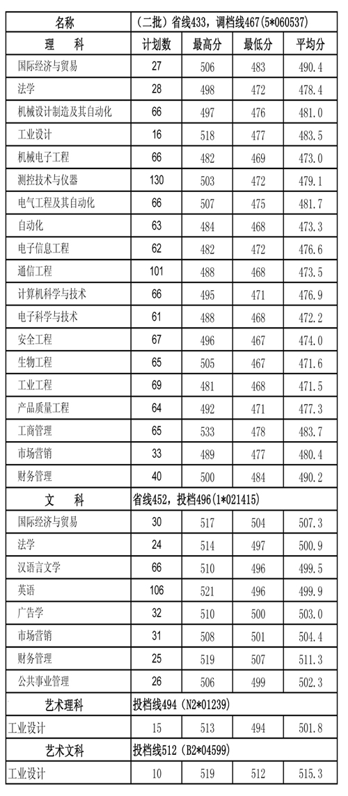 | 2012年中国计量学院在浙江省招生录取情况 | |