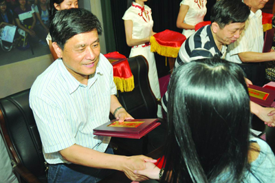 副校长宋明顺宣读了2012年度我校学科竞赛、社会实践、国家奖学金、国家专利等4份获奖文件。2012年度,我校A类学科竞赛共有950人次获得292项奖励,B类学科竞赛共有251人次206项奖励,34人获得国家奖学金,8人获得省社会实践先进个人,183人获批各类专利659项。150余位获奖学生代表上台领奖并与颁奖嘉宾合影留念。