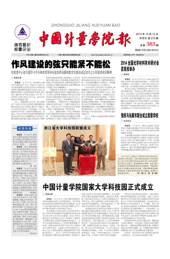 《中国计量学院报》创刊于1984年,是中国计量学院的党委和行政的机关报,由中共中国计量学院委员会主办,国内统一刊号为CN33-0812/(G)。《中国计量学院报》是学校加强思想政治教育和开展新闻宣传工作的重要舆论阵地,是传播社会主义先进文化和精神文明建设成果的重要载体,是学校联系师生员工、海内外校友、学生家长和社会各界人士的重要纽带,是展示学校对外形象和塑造学校品牌的重要窗口。