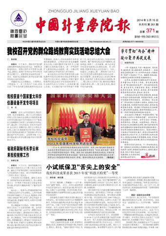 《中国计量学院报》创刊于1984年,是中国计量学院的党委和行政的机关报,由中共中国计量学院委员会主办,国内统一刊号为CN33-0812/(G)。《中国计量学院报》是学校加强思想政治教育和开展新闻宣传工作的重要舆论阵地,是传播社会主义先进文化和精神文明建设成果的重要载体,是学校联系师生员工、海内外校友、学生家长和社会各界人士的重要纽带,是展示学校对外形象和塑造学校品牌的重要窗口。