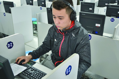 4月12日,我校汉语水平考试(HSK)网考考点启动首次测试。该考点于今年3月成功通过孔子学院总部/国家汉办评审批准,成为第153个网考考点,也是目前杭州市第二所、下沙唯一的高校网考考点。图为来自乌兹别克斯坦的萨尔丹正在参加HSK五级考试。