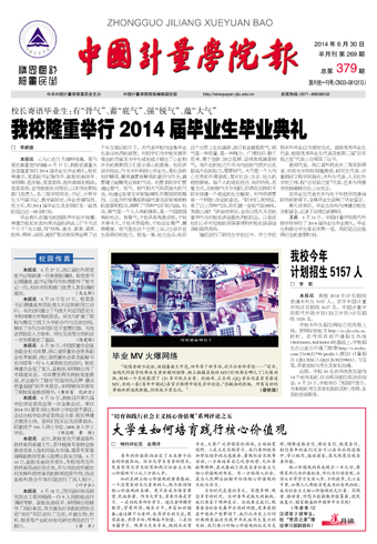 | 《中国计量学院报》创刊于1984年,是中国计量学院的党委和行政的机关报,由中共中国计量学院委员会主办,国内统一刊号为CN33-0812/(G)。《中国计量学院报》是学校加强思想政治教育和开展新闻宣传工作的重要舆论阵地,是传播社会主义先进文化和精神文明建设成果的重要载体,是学校联系师生员工、海内外校友、学生家长和社会各界人士的重要纽带,是展示学校对外形象和塑造学校品牌的重要窗口。 |