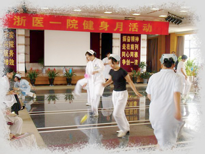 踢毽子可是个技巧活,多是女同志们儿时经常玩耍的活动,此时只见毽子上滚下翻,滴溜儿乱转,五彩的鸡毛忽高忽低、腾挪转移,好不漂亮。可不,内分泌科护士长袁静云、心内科护士长金建美、肝胆胰外科护士长陈黎明早早地就带领着科室内的姐妹们赶来了。“许多人连饭还没赶得及来吃呢,就急急地要来参加比赛啦”,护士长们纷纷表示,“带着科室里的姐妹们一起来运动,既放松了心情,又锻炼了身体,还能增进科室内的凝聚力,真是一举多得啊。”