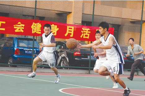 随着主裁的一声哨响,决赛在第五工会大组和第二工会大组间准时开球。深秋的寒风刺骨似乎对比赛没有任何影响:赛场上球员拼争激烈,黑白两色球衣构成了灵动而精彩的画面:跃动的身影,完美的过人,漂亮的抢断,百步穿杨的三分,弹无虚发的罚篮……场外也是一片热闹的景象,两支球队的拉拉队员都在忘情的为球员欢呼,为队员华丽的表演而折服。