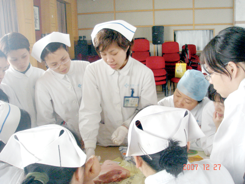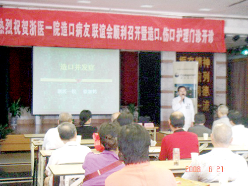造口、伤口护理小组坚持每两月一次学术活动来不断丰富我们的知识,通过个案讨论、专题讲座等形式,不断提高小组成员的专科知识。经过2年多学习与实践的积累,我们也开始走上了教学的舞台。2008年4月成功举办了造口护理培训班,来自全省60余名护理人员参与学习;2009年我院成为造口治疗师学校的实习基地,接受造口治疗师实习。2009年5月将要承办省级继续教育项目——《造口及慢性伤口治疗新进展》,进一步扩大我院在该专科护理领域的影响。