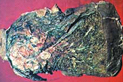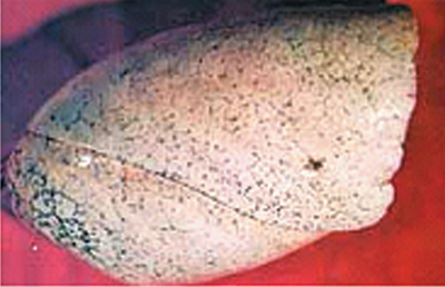 健康肺与吸烟者肺的对比(左:健康者;右:吸烟者)