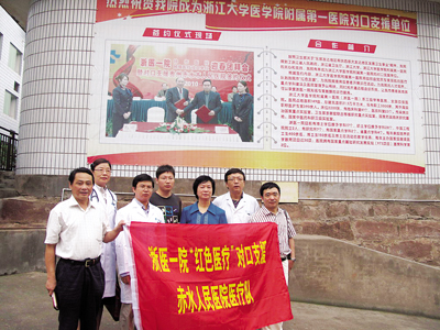 为贯彻落实党中央、国务院关于深化医药卫生体制改革的精神,根据卫生部、省卫生厅和浙江大学对口支援西部地区的工作部署,2010年9月8日,浙医一院“红色医疗”对口支援赤水市人民医院医疗队一行七人在党委书记薛金增的带领下到达贵州赤水。