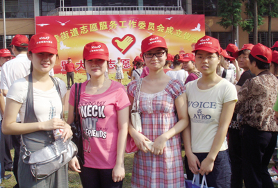9月18日上午,小营街道志愿者工作委员会成立大会暨志愿者活动启动仪式在杭二中分校操场隆重举行。上城区委、区政府领导到会向小营街道成立志愿者工作委员会表示热烈的祝贺。在彩旗招展的操场上,一队队头戴小红帽的志愿者形成一片红色的海洋。在“长明寺巷社区”的志愿者队列中,浙医一院第14党支部的6位党员格外引人注目。原来,我院第14党支部于日前与长明寺巷社区党委就“创先争优”活动中,如何在“服务社会”方面“结对共建”达成共识,党支部应社区党委的邀请,首先派出部分党员参加了以上活动,其中,傅三珊、陆佳丽、王璇和郭琴芬同志参加了启动仪式,陈跃和应月华同志参加了为社区居民的义诊服务,受到了社区领导及居民的欢迎和好评。