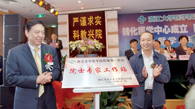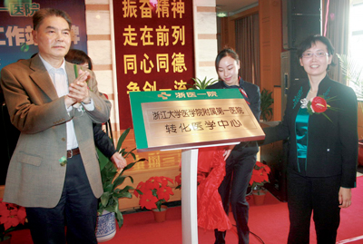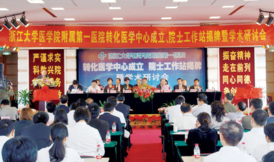 接下来,教育部科技司副司长陈盈晖、省卫生厅马伟杭副厅长、浙江大学党委副书记郑强教授也先后致辞,他们在讲话中指出,近几年来,浙医一院在科技创新领域取得了令人瞩目的成就,医院有5个项目获国家科学技术进步二等奖,16个项目获得浙江省科学技术进步一等奖。SCI论文数连续6年进入“全国医疗机构SCI收录前十强”。2009年医院到位的科研总经费达到1.03亿元,成为浙江大学首个年度科研经费超过一个亿的附属医院。尤其在肝移植、人工肝、肾移植、骨髓移植等领域具有雄厚实力,居国内领先水平。此次,浙医一院结合自身优势学科,针对影响我国人民健康的重大疾病,建设一个国际一流的系统化、规模化、集成化的转化医学中心和院士专家工作站,必将引领我国转化医学的研究方向,同时对于发挥浙江大学和全国大型医疗机构多学科优势和人才优势以及国际影响力,均具有重要的意义,也必将在医学前沿领域取得高水平的研究成果,造福人民健康事业。