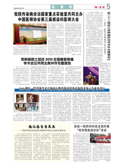 | 2010浙医一院消化学术高级论坛暨消化内镜诊疗新技术演示会成功举行 | 从台湾解剖课看人文教育 |