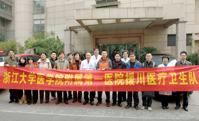 本报讯 12月24日上午,我院参加浙江省卫生厅第八批援川医疗卫生队的10名成员启程奔赴四川省青川县灾区,开展对口支援青川灾后卫生医疗重建工作。