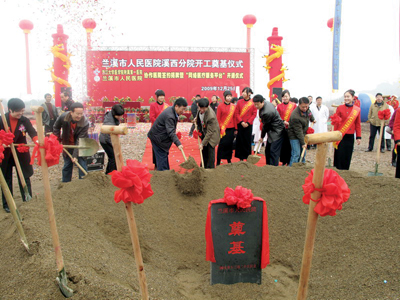 12月25日上午,雨过天晴,高歌凯奏,三喜临门。在兰溪市人民医院溪西分院奠基工地上隆重举行浙江大学医学院附属第一医院与兰溪市人民医院协作医院签约揭牌、网络医疗服务平台开通暨兰溪市人民医院溪西分院开工奠基仪式。