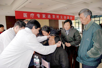 尽管来参加义诊的群众很多,但就医的秩序非常有序,由志愿者发放候诊号码后,群众们自发地在一旁排队等候。许多群众拿着诊断书来找专家,有的一家来了好几口人。“这个活动真是好啊!”城东村一位老大爷说:“咱农民不出家门就能免费享受城里医院的医疗服务,专家看病非常仔细,太满意了。”