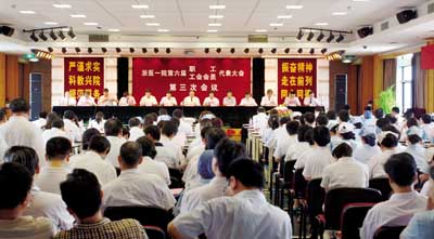 2010年7月26日,我院第六届“双代会”第三次会议在2号楼22楼多功能厅隆重召开。浙江大学医学部党委书记陈智受邀出席大会,我院院长郑树森院士,党委书记薛金增,副院长梁廷波、王慧明、裘云庆、顾国煜、陈亚岗,党委副书记厉有名、陈江华,财务总监吕宏,院长助理王伟林、沈晔在主席台就坐,大会由党委副书记陈江华主持。此次大会,到会正式代表、列席代表224人,肩负着全院职工的重托,在会上共商发展大计,共绘发展蓝图。