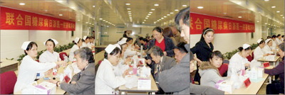 在活动现场,内分泌科医护人员为糖尿病患友免费测量血压、血糖,向前来咨询的患者讲解糖尿病的症状、如何预防糖尿病、糖尿病患者应注意的事项等知识,并发放《糖尿病的饮食及运动》等知识宣传手册。除集中开展咨询活动以外,内分泌科还开展了“糖尿病患者日常管理”、“糖尿病饮食及运动”防治健康讲座。据统计,这一系列的活动共吸引了近400余人次参加。