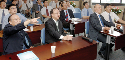 2011年8月28日下午,香港外科医学院院长陆洪滔教授,中国事务总监、中国科学院院士刘允怡教授,总监察叶维晋教授一行考察浙江大学附属第一医院普通外科高级培训基地。浙江大学附属第一医院院长郑树森院士,王慧明、裘云庆、顾国煜副院长,以及院长助理王伟林、沈晔陪同考察。附属一院各职能科室负责人、外科学科带头人参加了座谈会。