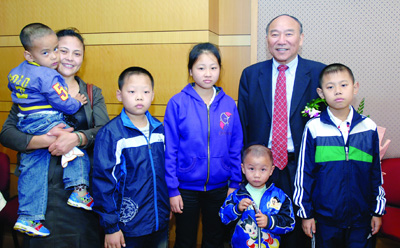 孩子们肝移植后健康成长,图为孩子们与主刀医师郑树森院士合影