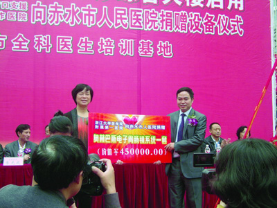 我院自2010年与赤水市人民医院签订对口支援协议以来,院长郑树森院士及党政领导班子高度重视,多次召集会议强调做好这项工作的重要性,并结合我院的医疗优势及赤水人民医院的需求,制定帮扶具体计划,包括派遣医疗队、接收进修人员、捐赠医疗设备等一系列对口支援工作。一年多来,我院已派出三批副主任医师或高年资主治医师以上的医务人员长驻赤水市人民医院,以每4个月一轮,参加该院的临床诊疗、人员培训、学科建设、科研指导等援助活动,着眼于培养赤水人民医院的技术团队,造福当地百姓,赢得了当地医护人员和病人的普遍好评;此外,我院还不定期地先后派出了5批医疗队,23位领导和专家参与援助指导工作,通过增强内涵,积极帮助赤水市人民医院“创二甲、上等级”活动;我院还先后捐赠价值共145万元的医疗设备,帮助赤水市人民医院建立和开通了远程医疗网络服务平台,促进了信息化建设,使该院的信息化建设走在了全省前列;同时还帮助赤水市人民医院成立医学检验中心等。实实在在地为当地群众带去了浙江人民的关爱,使得浙江的优质医疗资源向西南部地区辐射,切实提高整个地区的医疗水平。(文/图 外联办)