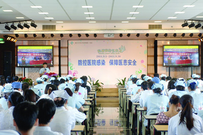 本次活动的学习内容是以卫生部医院感染管理的各种法规为准则,通过专家讲座及以问题为本的教育讨论方法、版画宣传、知识竞赛等多种形式展开。开幕式上梁廷波副院长郑重地宣读了倡议书,呼吁全院医务人员树立良好的职业道德和高度的责任心,在日常工作中务必要做到五个清洁:清洁的双手,清洁的操作过程,清洁的产品,清洁的环境,清洁的设备。