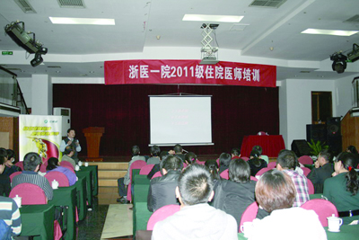 10月24日晚6点,2011级住院医师培训讲座第一课在中瑞大厦准时举行。虽然倾盆大雨,但2011级住院医师均早早来到会场。
