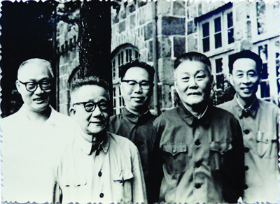 上世纪70年代初,杨松森、王季午、陆琦、郁知非、楼福庆(自左至右)合影
