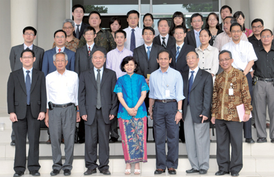 在印尼大学兼职教授受聘仪式上,郑树森院士与中国驻印尼大使章启月、印尼大学领导等合影
