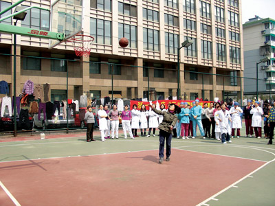 3月8日的中午,趣味投篮比赛又如期而至。我院党委书记薛金增、党委副书记厉有名亲临现场讲话祝全院女职工节日快乐,主持了开球仪式后又兴致勃勃的观看了比赛。比赛竞争激烈,气氛活跃,只见一位位巾帼豪杰摆出各种造型投篮,还没有轮到的就在后面加油助威:“往上抛呀,要往上抛!”,“争取进一个,再进一个!”大家互相鼓励,在进球后连连大声叫好,在失误时加油提醒要点,休息的时候更有“篮球高手”帮助总结投篮经验或手把手教授投篮技巧。血液科主任金洁作为队员也参加了比赛,她高兴地说:“很久没有好好地进行体育锻炼了,能趁着‘三八节’的到来,一起参加体育运动,既愉悦了心情,更传递出了‘快乐节日,健康人生’的理念,真是让每一位女同志感到无比开心。”可不是,虽然投篮比赛对于女同胞们而言难度颇大,但是还是抵挡不了大家的挑战精神,球场上留下了一个个矫健的身影。