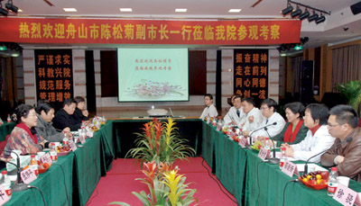 2010年3月2日,舟山市副市长陈松菊,市政协副主席、舟山医院院长张永奎,市卫生局局长严济岳率领舟山市县区政府、市县区卫生局主要领导和各医院主要负责人组成的数字卫生考察团一行,上午参观了我院良渚门诊部以及浙江数字卫生技术研究院的社区数字化建设,下午莅临我院参观考察医院信息化建设工作。