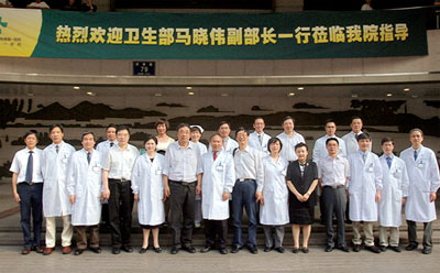马晓伟副部长等听取了我院工作汇报,对我院的各项事业的建设发展和深厚的文化内涵给予了高度评价,充分肯定了我院在公立医院改革试点中的工作,着重对我院的信息化建设、优质护理服务和承担公立医院的各项公益性任务等方面进行了点评和赞赏。他表示,在深化医改的大背景下,浙医一院越做越强,在临床、科研和教学方面都走在全国前列,并用一句话概括了我院的成绩——浙医一院工作“起点高、视野宽、贡献大”,是我国公立医院的优秀代表!是一支名副其实的国家队!