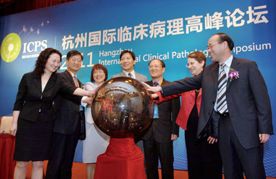 我院隆重举行2011年杭州国际临床病理高峰论坛暨与加拿大多伦多大学西奈山病理系结成合作科室揭牌仪式