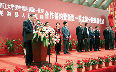 2011年4月25日,在浙江大学、浙江省卫生厅的高度重视和关心支持下,我院与龙游县人民医院隆重举行合作签约揭牌仪式,两家医院开展紧密型合作,龙游县人民医院正式挂牌成为我院龙游分院。