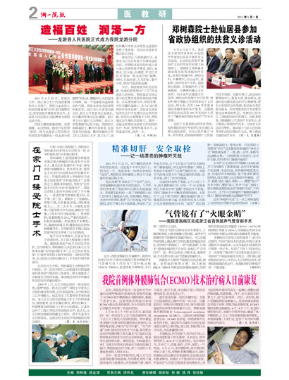 我院首例体外膜肺氧合(ECMO)技术治疗病人日前康复
