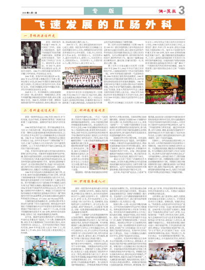 1984年肛肠外科建立后,即开展高难度手术。当年12月成功进行第一例全结直肠切除小肠贮袋肛管一期吻合治愈顽固性复发性溃疡性结肠炎,以后又把此手术应用于全大肠腺瘤病和全大肠血管瘤。1986年10月成功施行第一例结肠次全切除治疗结肠无力症,为外科手术治疗“习惯性便秘”开了先河,打破了这类病人以往只到内科门诊开通便药的惯例。以上手术的开展均早于国内文献报道,因而处于国内领先地位。