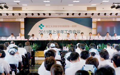 2011年7月28日下午,我院在医院2号楼多功能厅召开2011年年中工作会议。传染病诊治国家重点实验室主任李兰娟院士、院长郑树森院士、院党委书记薛金增等院领导班子及全院中层干部参加了此次会议,浙江大学医学部党委书记陈智、医学部副主任黄河莅临会场。郑树森院长作了医院工作报告,报告回顾和总结了今年以来医院所取得的成绩,并进一步提出了2011年下半年医院工作思路。