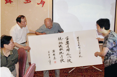 在这个美好的日子里,我们也运用了各种方法尽情表达我们对叶主任的爱。浙江省医学会朱主任带来了来自医学会最美好的祝愿;薛书记带来了我院院长郑树森院士亲笔题写的对联:“宝婺星辉延八秩,蟋桃瑞献祝千秋”;我院心胸外科的晚辈们收集起过去岁月的点点滴滴,制作了一册涵盖叶主任一生奋斗历程的精美纪念册《春华秋实》;叶主任的那些学生们如今都已经成长为各家医院的学术领头人,他们也专程赶来为恩师献上山水画“福禄寿喜”。感人的画面一幕接着一幕,这一刻我们仿佛回到那个年代,依靠在叶主任为核心的集体中艰苦奋斗;这一刻我们又似相聚一堂的一家人,围绕在叶主任身边为他庆生;这一刻无论是当年和叶老同甘共苦的老同事,亦或是叶老亲手教诲过的学生们,还是我们这些从未和叶老一同工作过的晚辈们,都被爱紧紧包围着;这一刻将被我们每一个人珍藏在内心深处。