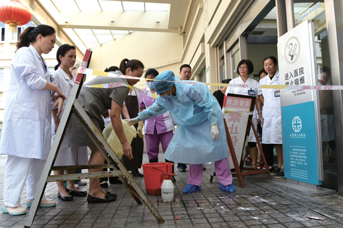 为提高医务人员应对标本泄露生物安全事故的应急处理能力,有效地防止“生物泄漏”事故造成人员和环境的危害,7月27日下午,院感科联合检验科、防保科、总务科、保卫科等部门进行了实验室生物安全和医疗废物泄露意外事故应急演练。并针对此次演练的细节问题提出整改意见,从而提高工作人员应急能力。