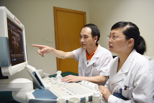 每天固定的操作姿势,缓缓移动着的超声探头,显示屏上仔仔细细搜寻的目标,看似人机合一的平静世界里,却展现着波澜起伏的情感世界。这些年,黄德益在检查各种疾病的同时,为自己制定了更高的技术目标,向疑难杂症和未知领域迈进。因此,他在超声造影技术及甲状腺、乳腺、妇产等超声诊断积累了丰富的经验。由于技术精湛、人缘好,前来找他检查的人总是络绎不绝,挤满了诊室。