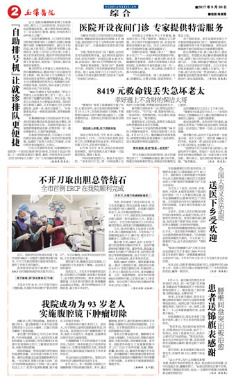 我院成功为93岁老人实施腹腔镜下肿瘤切除