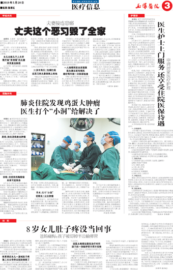 肺炎住院发现鸡蛋大肿瘤 医生打个“小洞”给解决了