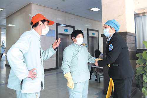 关键时期,医院增设重点防控区,这让保洁员的工作量比日常增加了许多,但是他们任劳任怨,在保持各自区域卫生标准的前提下,坚持消毒工作,守护着医院的洁净。