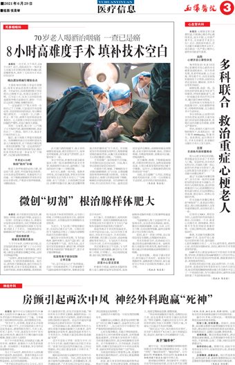 房颤引起两次中风 神经外科跑赢“死神”