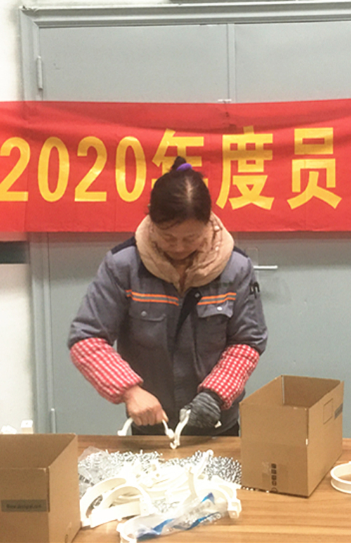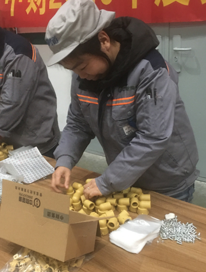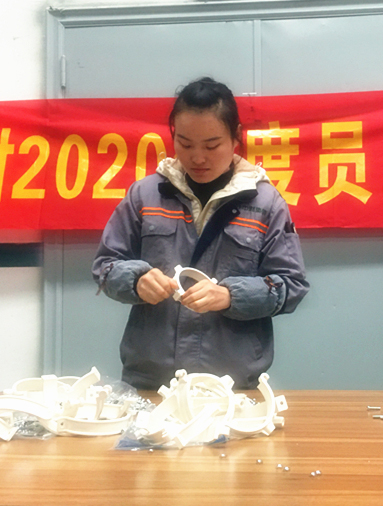 11月27日上午8:20,管件生技部首先拉开了技能比拼的序幕,第一场比赛为PPR管卡拧制和贴防伪码包铜件。15名参赛选手按每3人一组进行比赛,整个赛程中员工的动作“精、准、稳、快”,展示了管件生技部女兵们的帼国风采和娴熟技能。第二场比赛,17名参赛选手进行了PVC管卡拧制比拼。与PPR管卡相比,PVC的管卡更大,操作技巧和力度的结合更为重要。