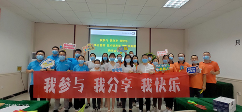 锻炼身体,增强体质。活动在我们激情热烈的健康操“金龙拍拍操”中拉开序幕。接着,分别由技术研发部黄红艳、物料采购部欧阳焱、人事企管部胡方对本部门七月份工作亮点进行分享。分享结束后,三个部门领导分别就后续工作期望进行交流。随后,进行了“快乐套圈”趣味活动,经过紧张激烈的比拼,技术研发部获得胜利,收获了“三只松鼠”礼包。