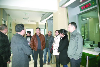本报讯 2月14日上午,市局局长孟一兵,综合办主任王彰、金融业务局副局长叶幸凯一行三人,在乐清局局长丁亮、副局长卢东和金融业务局局长徐佩秋的陪同下来虹桥片调研指导网点工作。