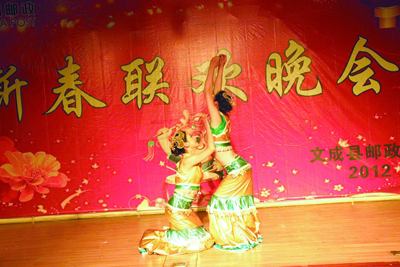 本报讯 2月10日,文成局举办2012年新春晚会,全县近两百名邮政干部职工、退休老同志及职工家属欢聚一堂,轻歌漫舞,喜迎新春,携手创造和谐乐章。