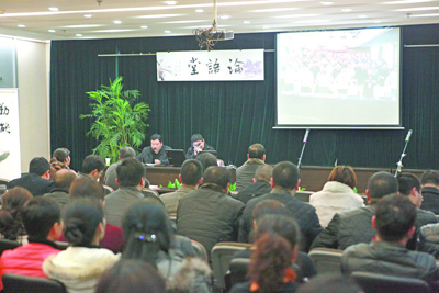 本报讯 2月21日晚,市局举办《国学经典解读与社会和谐构建》国学讲座,特别邀请“论语堂”国学工作室、温州大学印刷文化研究所苏勇强博士,为局干部职工系统地讲授国学知识。