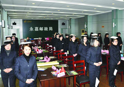 本报讯 从3月份开始,乐清局启动新一轮邮政员工服务礼仪、技能送培下乡活动,首站定在白象分局。