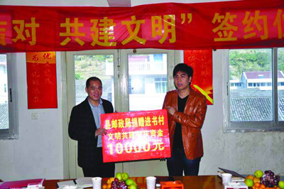 当天,该局还为进书村送上了共建帮扶资金,并与其举行了“双百结对共建文明”签约仪式,同时商定了双方的共建目标、共建任务、活动形式及具体安排。双方代表表示,要利用好“双百结对”这个平台,确定更高的创建目标,实现资源共享、优势互补,积极推动邮政部门和进书村的精神文明建设。