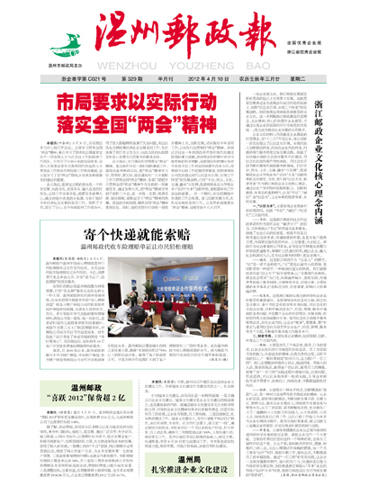 温州邮政“喜跃2012”保费超2亿